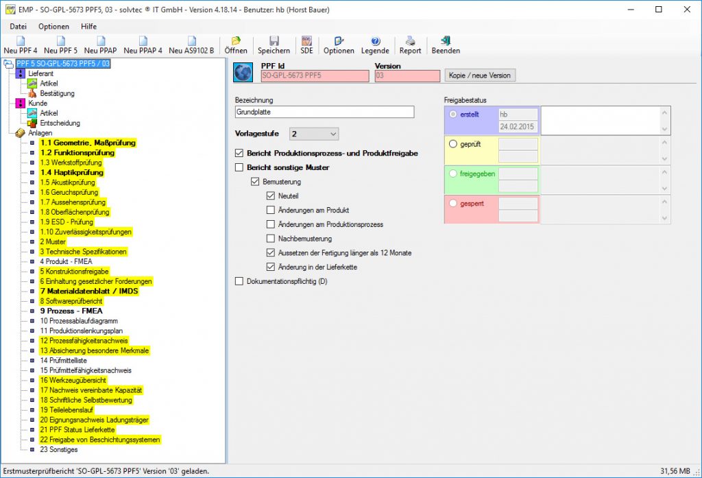 solvtec ® IT EMP- Erstbemusterung nach PPAP und PPF