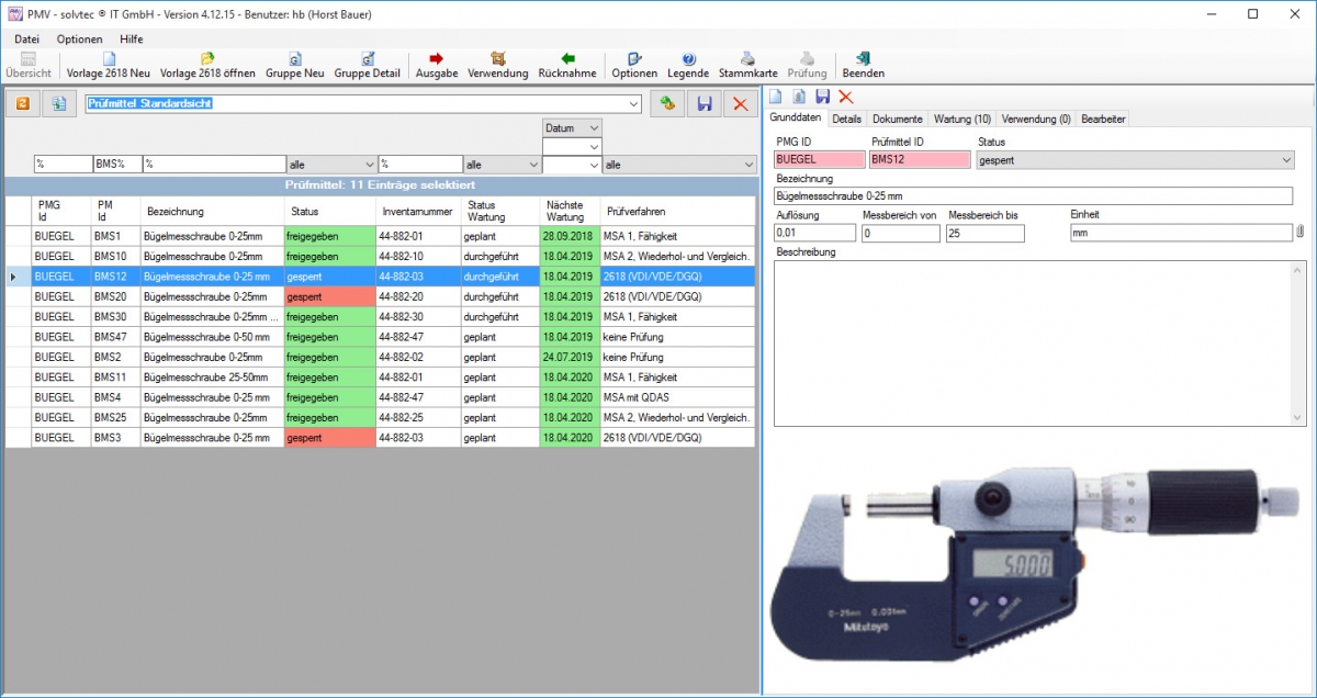 solvtec ® IT PMV (PMP, MSA, 2618) – Alle Prüfmittel im Blick